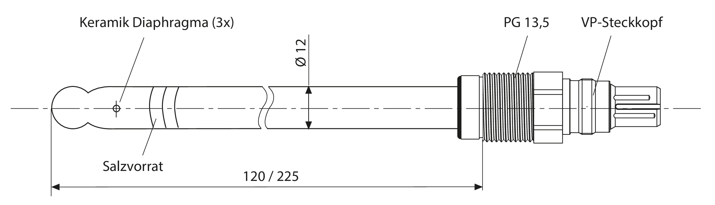 | Bezugssystem: | Ag/AgCl, Gel-Elektrolyt, Salzvorrat |