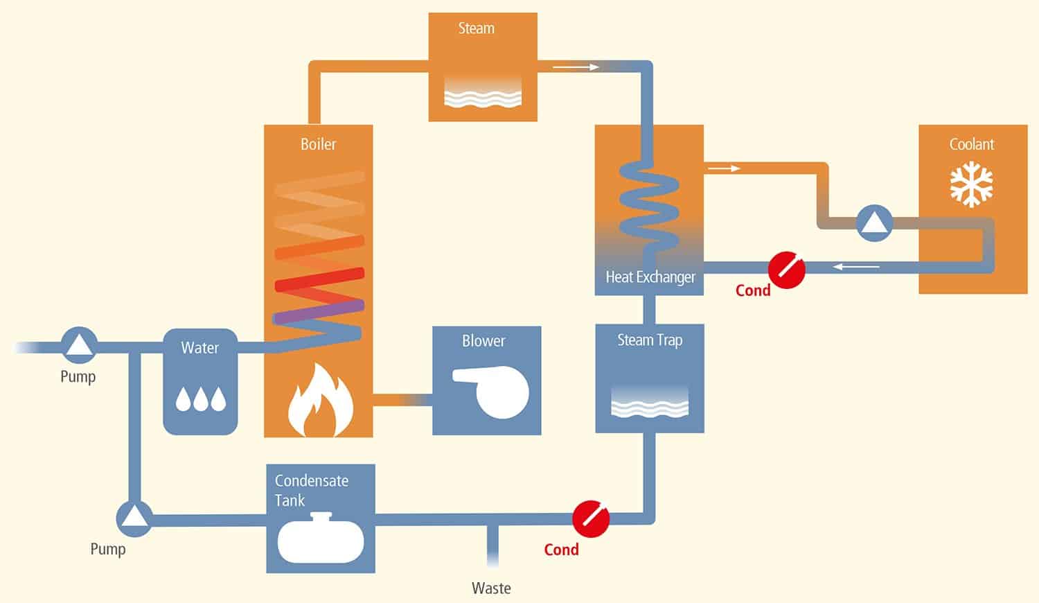 Heruntergekühlter Dampf schlägt sich als Kondenswasser nieder, das eine hohe Reinheit und somit eine sehr geringe Leitfähigkeit aufweist. Da eine erhöhte Leitfähigkeit auf Verunreinigungen hinweist, stellt die Leitfähigkeitsmessung des Kondensats eine zuverlässige Methode dar, um die Anlagen auf ordnungsgemäße Funktion bzw. auftretende Prozessdurchbrüche zu überprüfen.