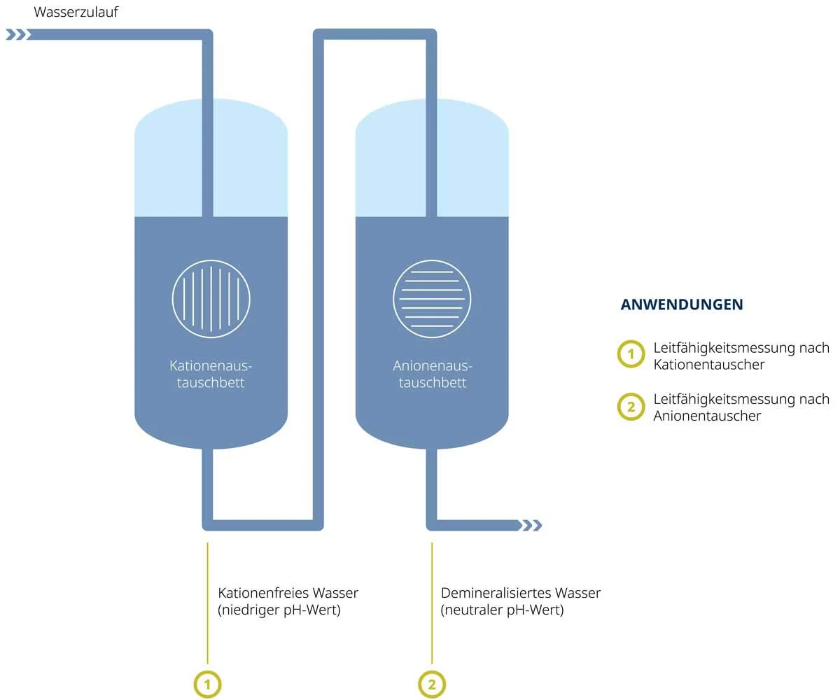 2 Applikationen (1. Leitfähigkeitsmessung nach Kationentauscher, 2. Leitfähigkeitsmessung nach Anionentauscher)