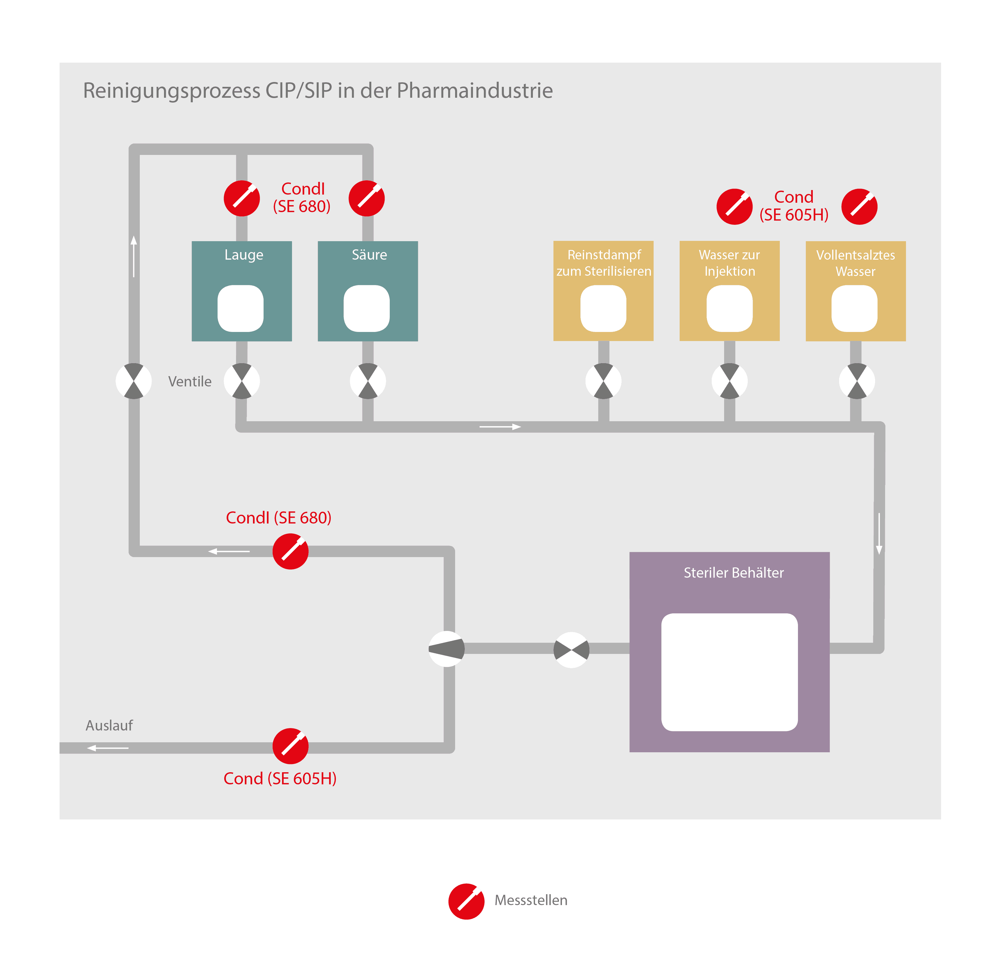 In pharmazeutischen, biologischen oder auch in verfahrenstechnischen Anlagen zur Lebensmittelproduktion müssen alle medienberührten Anlagenteile regelmäßig gereinigt und sterilisiert werden. Daher werden alle relevanten Leitungen und Behälter bei den Reinigungs- und Sterilisationsverfahren „Cleaning in Place (CIP)“ bzw. „Sterilization in Place (SIP)“ mit den jeweils prozessspezifisch alkalischen und sauren Reinigungsmitteln gespült und desinfiziert.