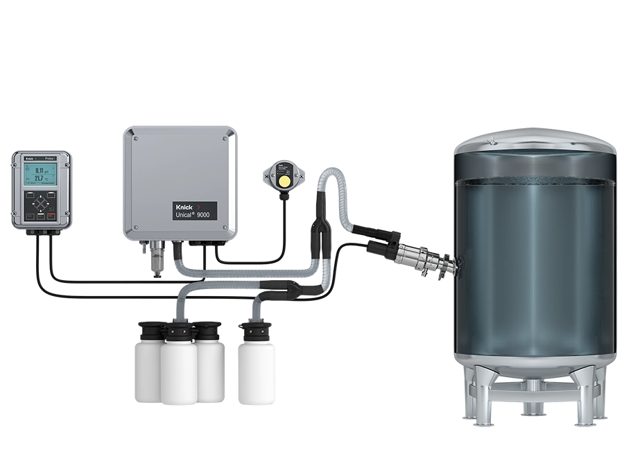 cCare es un sistema flexible que se puede adaptar a cada aplicación. El sistema consta de un controlador electroneumático Unical 9000 o Uniclean 900, un portasondas retráctil de las series Ceramat o SensoGate y un transmisor Protos. El sistema se completa con recipientes de medios con bombas dosificadoras integradas, neumáticas y sin desgaste. Los componentes tienen una estructura modular. Los portasondas pueden adaptarse a cualquier aplicación mediante multitud de materiales, adaptaciones de proceso y profundidades de inmersión.