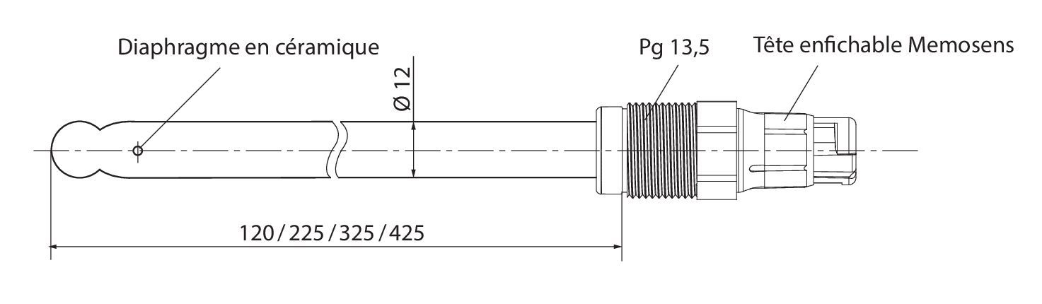 | Système de référence: | Ag/AgCl avec barrière aux ions argent |