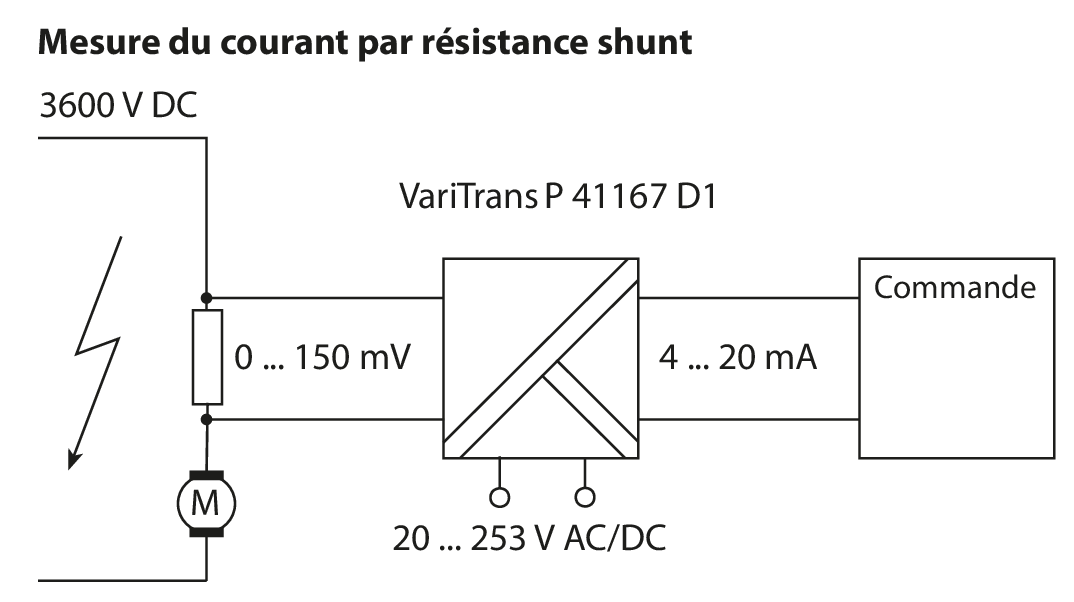 | Fonction: | Mesure du courant à potentiel élevé avec une résistance shunt |
