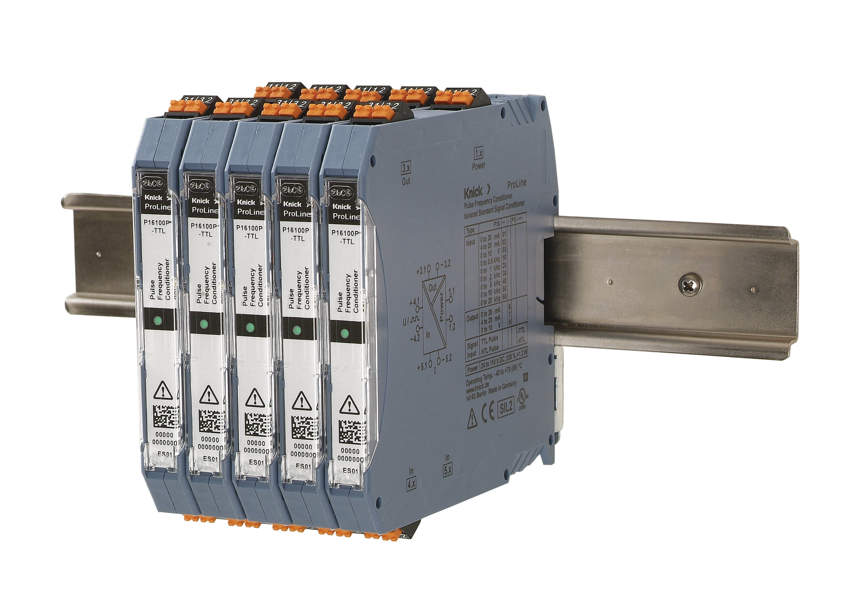 - Pulse frequency measurement, e.g., of speed sensors / rotary encoders for safe detection of the train’s speed or standstill; galvanic isolation and