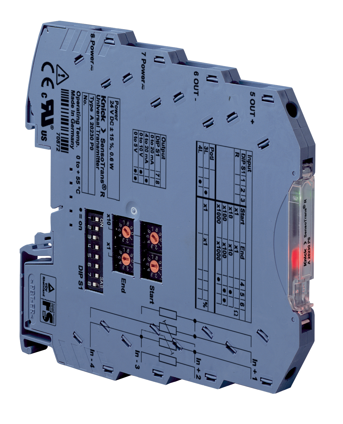 Inoltre, finora i trasmettitori di resistenza nell'armadio modulare erano molto larghi e occupavano quindi molto spazio nell'armadio elettrico. Per consentire l'utilizzo in tutto il mondo, spesso sono state messe a disposizione più varianti con diverse tensioni di alimentazione.