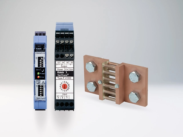 수천 볼트의 전압이 흐르는 환경에서 크닉의 고절연 전압, 전류 및 온도 트랜스미터는 완벽한 전기적 절연으로 사람과 시스템에 대한 최대의 안전성을 보장합니다. 직류 및 교류 전압용 변압기는 과금을 위한 정밀한 에너지 측정에도 사용할 수 있습니다. 또한 이 프로그램은 최대 4800 V의 절연 성능을 탑재한 전압 검출기 또는 Voltage Presence Detector(VPD)을 포함하며, 이 전압 검출기는 고전압이 흐르는 환경에서 위험한 전압의 존재를 감지하고 알립니다. 최대 kA 범위의 전류 측정을 위해 액세서리 프로그램은 전압 강하 정도가 낮고 정확도 및 과부하 용량이 높은 분로 저항을 제공합니다.